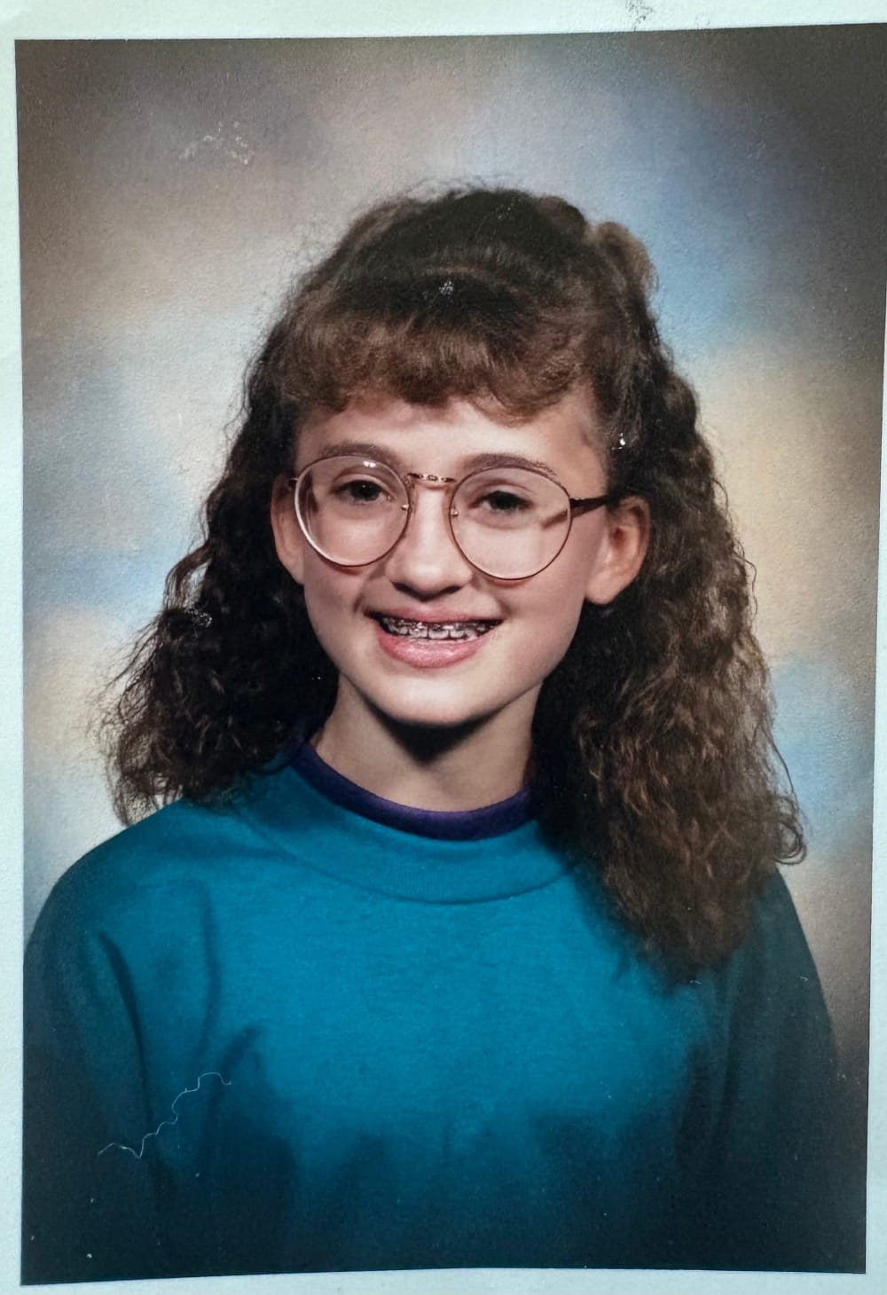 Hi! I'm Sarah, and I had a really bad cold, an old perm and recently tightened braces in my 7th grade school picture. It was a banner year, clearly, and I wrote all about it in my stacks of spiral notebooks that I kept under my bed.