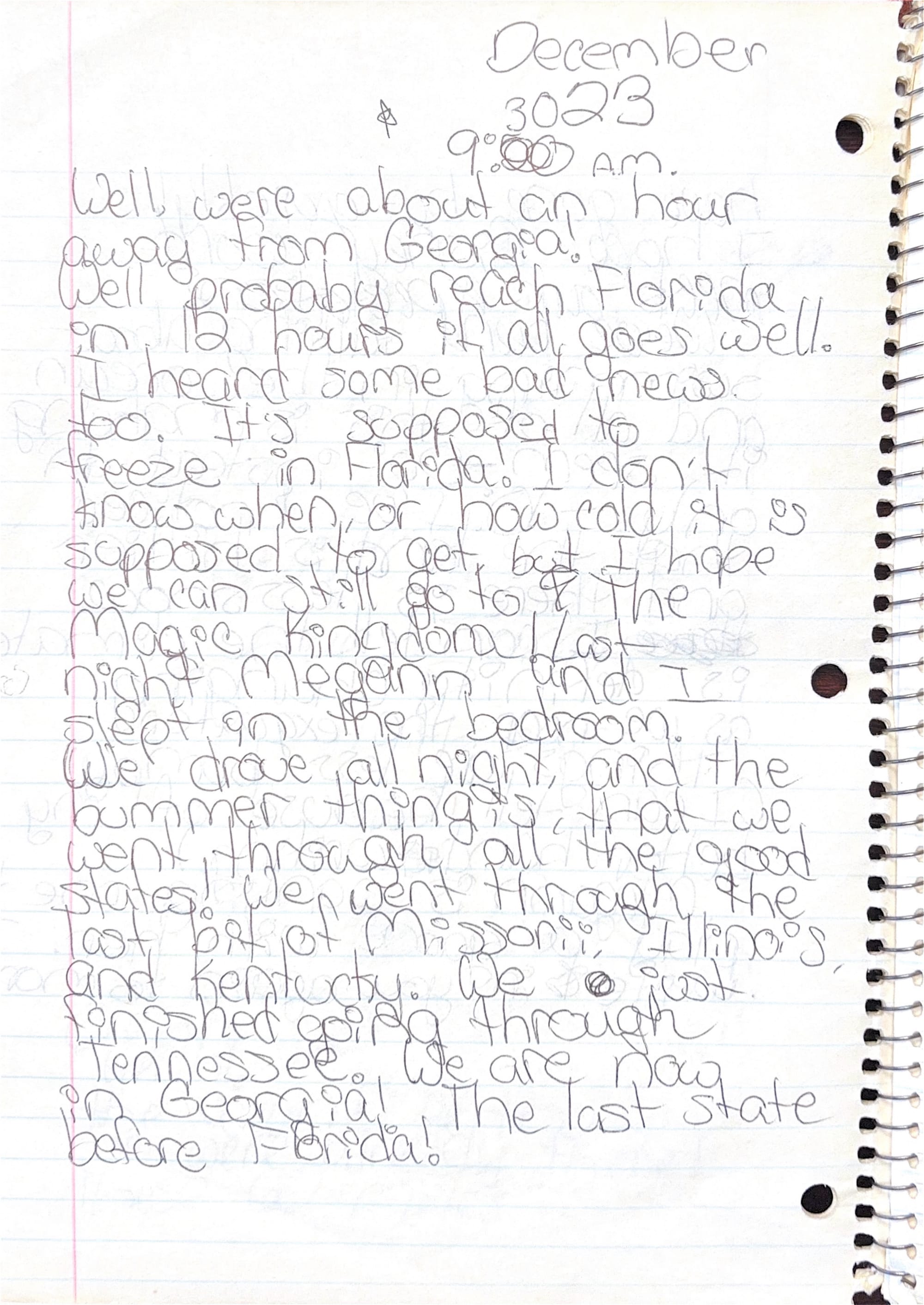 Hi! Thanks for checking out this entry of That Was Rad! We're continuing our road trip from Iowa to Florida in December of 1989. I'm riding in a rickety old motor home with my three siblings and my parents, with not much to do except write in a notebook and look at the scenery.