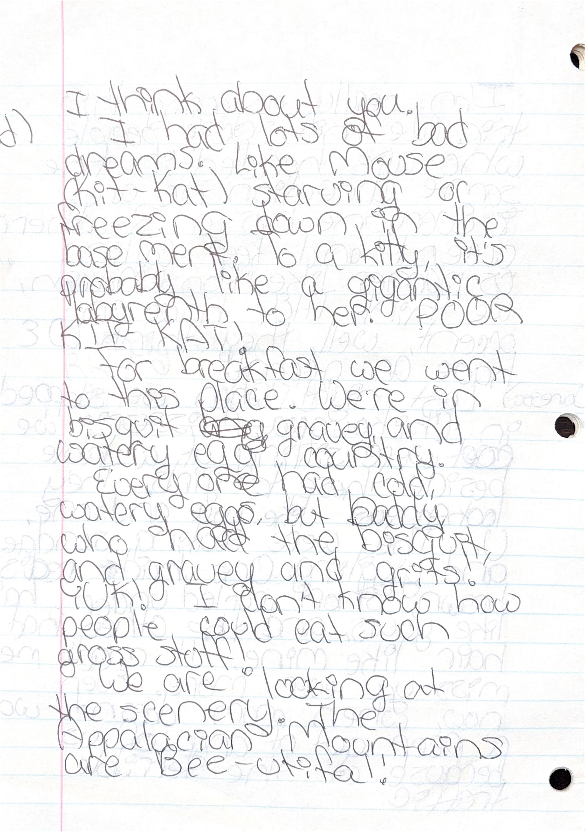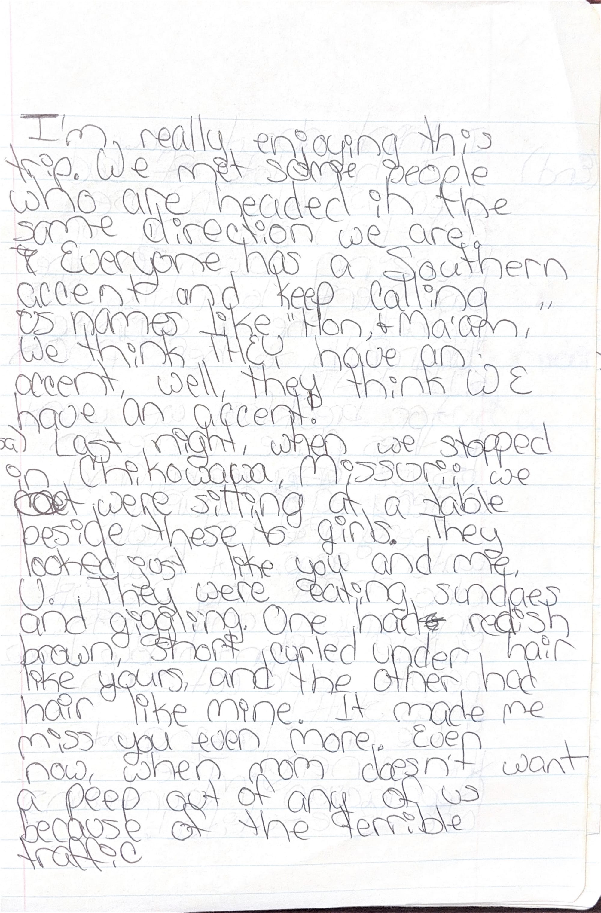 As a 10-year-old, I notice things like the climate shifting from the snowy, cold midwest to the warmer climate of the South. People have accents I've never heard before and have different ways of greeting us. And grits?? What are grits?